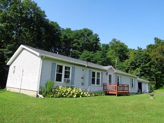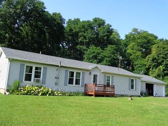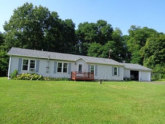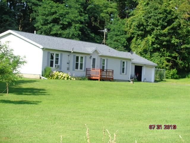 Parklike setting on just over 3 acres with beautiful trees, picnic area and entertainment pavilion! This ranch is a Certified Modular Home, NOT a doublewide. Featuring formal living room, large family room with woodburning fireplace, eat in kitchen plus dining room, master bedroom with walk in closet and large master bath, first floor laundry room. Spacious attached garage with 2 bays each with door automatic opener. New roof 2 years ago! Newer hot water tank, new vinyl windows across the front of the house! Spring fed well, owners have always had plenty of water. Minutes from Fredonia, this country ranch gives you room and space, deer and turkey roam the backwoods and the pavilion and firepit in the picnic grove lend to super parties and gatherings! Map of land is attached-click on link--