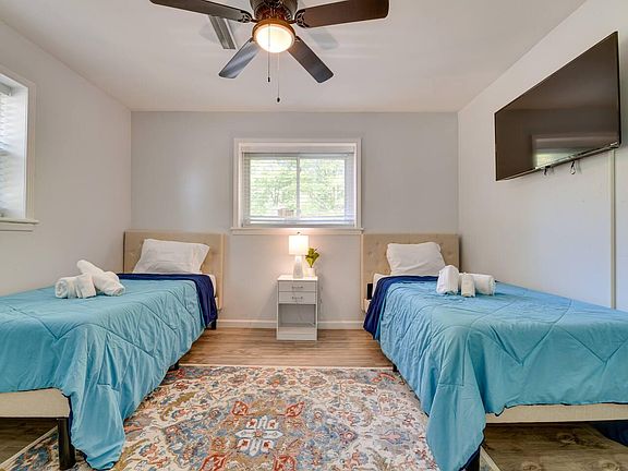 "Find more available rooms for rent at: alcoverooms. com/listings. This is a room for rent in a shared home with roommates on long-term leases. One is moving out and a room is opening up. Do not visit the property without first contacting us to schedule a tour at the number below. Rooms for rent in this convenient East Point rental. Located just 10 miles from central downtown, this 4-bedroom, 2-bathroom home offers quick access to Mercedes-Benz Stadium, the BeltLine, and multiple attractions. When not out exploring in Atlanta, kick back on the homes covered patio while grilling dinner, or relax in the A/C while streaming your favorite show on one of the Smart TVs. This home has it all! Bedroom 1: Queen Bed | Bedroom 2: Queen Bed | Bedroom 3: 2 Twin Beds | Bedroom 4: 2 Twin Beds KITCHEN: Refrigerator, stove/oven, dishwasher, microwave, coffee maker w/ K-Cups, ground coffee, creamer & sugar provided, dishware & flatware, spices, toaster, blender, cooking basics INDOOR LIVING: Smart TVs w/ cable, electric fireplace, dining table, workspace, ceiling fans GENERAL: Washer & dryer, towels, linens, central air conditioning, hangers, hair dryer, keyless entry PARKING: Driveway (7 vehicles), street parking *Bedroom furniture removable at tenant's request"