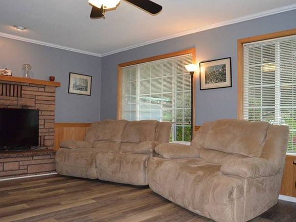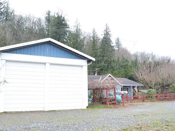 This charming home situated on .35 acres features an updated kitchen with stainless steel appliances, 2 bedrooms with built in cabinets and dresser, 1 bath plus a large laundry room. Enjoy the warmth of the wood stove on chilly winter nights. Outside is a fantastic deck perfect for entertaining or hours of daydreaming beneath the large pergola to keep the rain out. This property exceeds expectations with a 20x26 shop plus 3 extra outbuildings for your favorite projects, or additional storage. This price will move you!
