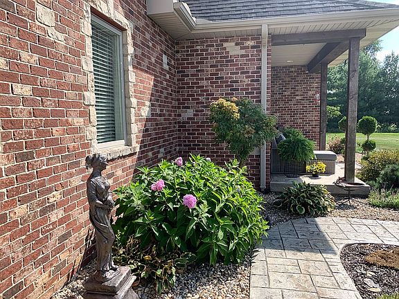 Why not feel like you’re on vacation all year? Super charming brick and stone, 4 bedroom, 4 bath home. Enjoy sitting on your covered front porch with beautiful year round sunset views! Mature trees outline a portion of the property making this a tranquil sitting on approximately 3 acres. If you’re looking for privacy, in a great neighborhood, fishing in your own back yard, along with a golf-cart friendly subdivision this is the one! Open floor plan, updated kitchen with granite counter-tops, hard wood flooring, main floor primary bedroom with walk-in closet, tiled step-in shower, laundry conveniently also off the primary bedroom. Other noted features are zoned heating and cooling, both hot/cold water in finished garage, oversized bedrooms, Anderson windows, and finished bonus room. Entertaining is a breeze, with a finished walk-out basement, featuring kitchenette and custom in-ground salt water pool with slide and even a putting green. Conveniently located within 2 miles of highway 255 and school bus stop at the entry of subdivision. *Sale includes additional parcel of adjoining property with separate tax parcel number.* Showing by appointment only - Please call number on the listing (217) 848-6085 for viewing date, as the call/message tab does not send to us and is sourced out to Brokers/Realtor - not affiliated with this For Sale By Owner. Thank you! :)
