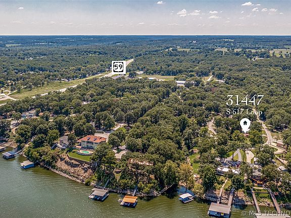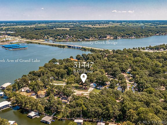 Great home for a weekender or for full time lake living. This ranch home has been updated with new windows and a newer roof. Open concept plan with kitchen and center island open to living area with wood burning fireplace. Main bedroom off living area. Seller rents the 2nd bedroom and bath as a rental apartment. Screened in porch has outdoor kitchen area. Large 36x36 shop has 10' overhead electric doors, concrete floor and updated LED lighting. Separate carport attached to home. Perfect property for VRBO or living with additional income opportunity. Just off Honey Creek bridge area with all of Grand Lake amenities!