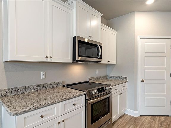 Open living concept with living room and kitchen areas featuring beautiful white kitchen cabinets, granite countertops, stainless steel appliances, spacious pantry, and deep stainless undermount sink. Kitchen island overlooks the family room with 9ft ceilings. Impressive Master suite that also includes 9-foot ceilings with a spacious master bathroom, granite tops with undermount double bowl vanity, 3a shower, and two walk-in closets. The other 3 bedrooms are to the front of the home, with a second full guest bath. Gold FORTIFIED Home certification with Smart Home Technology, control panel, doorbell, smart code lock, one smart light switch, and thermostat, all controlled by one app. Decorative colors and fixtures are throughout this beautiful home. 2 car garage and covered back patio/porch area. No Pets, No Smoking.