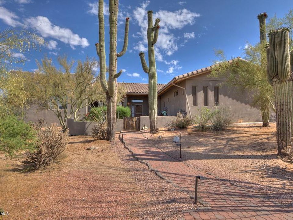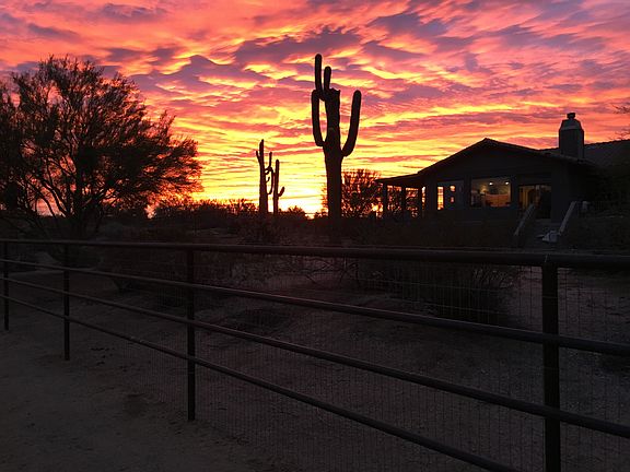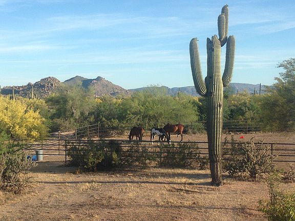 Gorgeous 4.4 acre, 3 bedroom, 3 bath horse property located off of Lone Mountain and Pima. Spectacular views from a large patio with sliding doors that open into the living room! The house is all block construction making it energy efficient. Open floor plan, with a spacious kitchen, gas stovetop, island, and granite countertops. Two master suites, one with a separate entrance and each with a full bathroom/ walk in closet. 4 stall barn, each with their own large run and cover, as well as auto waters. Two tack/ feed rooms and a wash rack. Arena and large turnout, with access to the wash for trail riding.