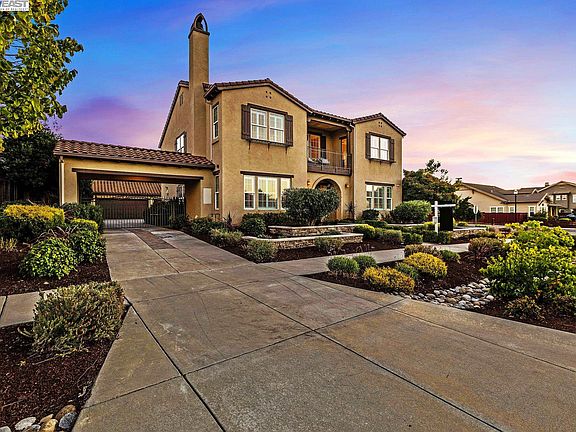 VINEYARD VIBES & LUXURIOUS LIVING IN VINSANTO - This meticulously maintained home with owned solar, gated driveway, and detached 3 car garage is situated on a premium corner lot, and offers the ideal location for enjoying all of Livermore’s fantastic amenities, including nearby award winning wineries. Upgraded throughout, this favorite floor plan has 5 bedrooms with one downstairs suite, 4 full baths, and nearly 3700 sqft of living area. The dramatic entryway features 2 story vaulted ceilings and formal living and dining rooms. The heart of this home is the kitchen-family room combo w/ chef’s kitchen featuring slab granite counters, professional grade stainless appliances, butler’s pantry, and built-in workstation. Upstairs you’ll find 3 more spacious bedrooms and 2 full baths, as well as a huge master suite w/ bath and fireplace and stunning views of your perfectly manicured backyard with custom hardscape where you can relax in serenity or entertain family and friends. Don’t miss this incredible home…and enjoy the best of vineyard living…running, walking, hiking and biking along the nearby trails. Explore Holdener, Robertson and Sycamore Grove Parks…and love the easy access to top rated schools and Downtown Livermore. Here in Vinsanto, you can really have it all & NO HOA!