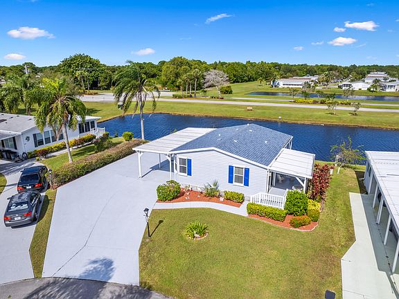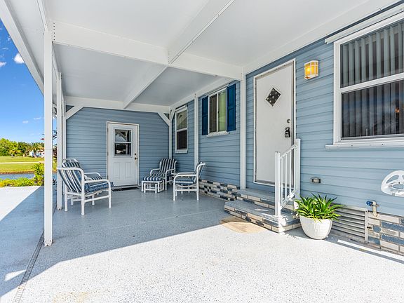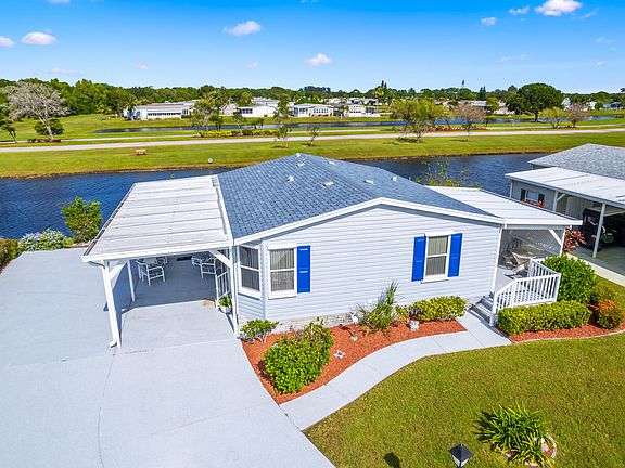 Own Your Land in the Savanna Club 55+ community. Lakefront 2 bedroom, 2 Bath with recent updates including newer kitchen, appliances, tile baths, flooring, 2019 roof, 2015 A/C, oversized decor drive, updated 4th wall carport along with an oversized drive and additional parking pad. All measurements approximate, buyer to verify. Washer & Dryer do not convey. Some personal effects are excluded from sale.