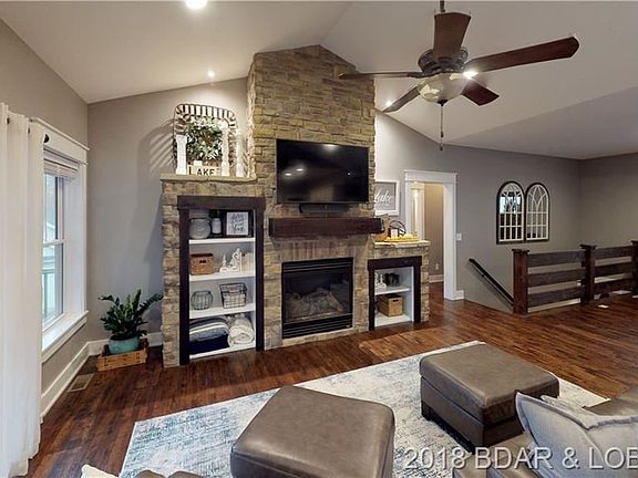 Lake of the Ozarks Luxury in Linn Creek! Beautiful custom built home by Ancell Construction. This craftsman style home will catch your eye & check everything off your wish list. This 5 bedroom, 3.5 bath home has an open floor plan with a large kitchen and living room. The master suite is spacious and the master bath has a 5' whirlpool tub & a marble walk in shower. Some of the finishing touches are granite countertops, oak flooring, hammered copper kitchen sink, breakfast nook, beautiful built in bar on the lower level, large finished bonus room over the garage with a 1/2 bath and much more. Available 12x32 boat slip in the community dock! Located in the perfect spot near the community pool. Recent Upgrades include: New top of the line fridge and dishwasher, new septic pump, rod iron fencing, fire pit area, new paint throughout, rock landscaping, exterior shutters recently stained, new backsplash in kitchen and an ADT security system added. Make sure to check out the garage below!