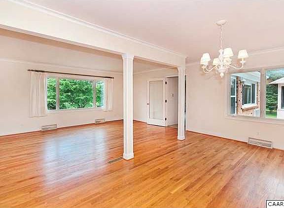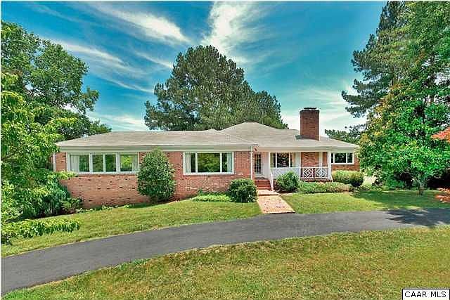 Surrounded by gently rolling hills and partial views of both the Blue Ridge & Southwest Mountains, this all brick one level home offers the quiet pleasures of country living on 2 acres, yet is close to town. There are formal living & dining rooms, family room w/wood burning fireplace, large sunroom as well as a new smaller breakfast sunroom. Large windows flood the interiors with natural light. Hardwood floors throughout, access to reservoir and expansion potential in basement. Freshly painted.