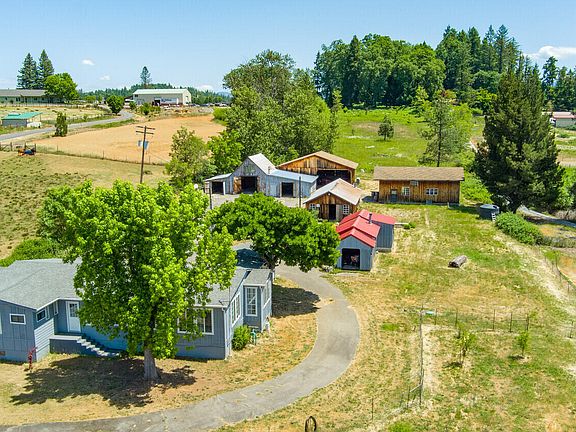 The hobby farm of your dreams is just a few miles outside town! The charming 3 bed/2 bath farmhouse features two large living areas (or turn the bonus room into your new primary suite). The property was once a fully-functional winery. Enjoy a mature vineyard of organic chardonnay grapes (or keep the current arrangement & exchange grapes for caretaking & bottles of wine!) & a fully-fenced orchard with apple, almond, & pear trees. An irrigation-filled pond flows into a 2500 gallon holding tank which has a drip system to the front vineyard & orchard. Table grapes & strawberries grow in the backyard while mature purple (sauvignon?) grapes grow untended at the rear of the lot near an irrigation canal. Outbuildings include a utility shed w/attached tool shed, woodshop, large barn (w/3-phase power) & RV barn PLUS two additional RV parking locations (RV spots have access to septic & power; 2 with access to water). New heat pump & electrical service/panel installed for the home & utility shed