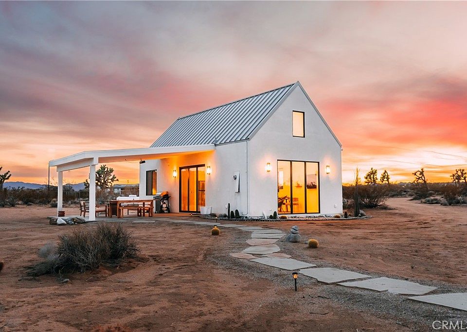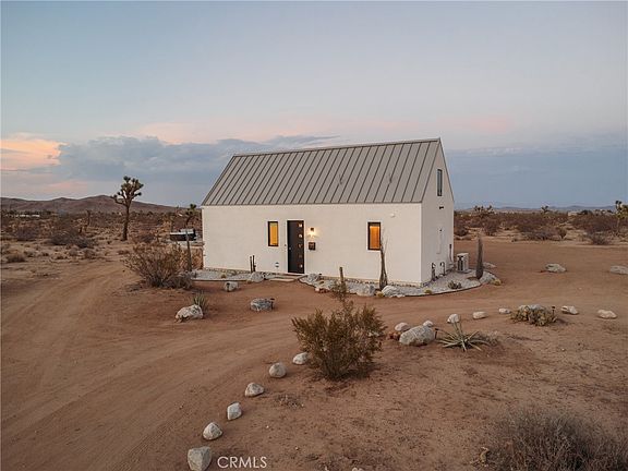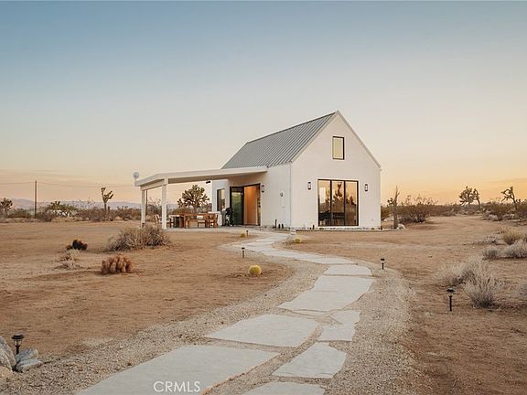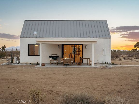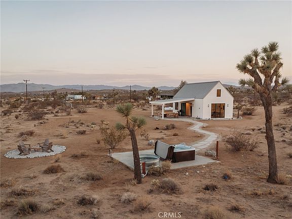 JEWEL CREST: Custom-built architecturally significant home, featured twice in Architectural Digest, including in their “9 of the Best Joshua Tree Airbnbs” list! Spread over a nearly 5-Acre parcel, this meticulously designed, constructed and furnished home makes for the perfect desert getaway. Utilizing Scandinavian influences for both interior and exterior design elements provide an understated quality, drawing attention to the dramatic 20-foot vaulted ceilings and the 10-foot-tall walls of windows – one of which doubles as a bi-fold sliding door that opens onto the 400-square-foot covered patio, creating the ultimate indoor/outdoor living experience. The aptly named Jewel Crest retreat also features a rare two-bedroom loft, separating sleeping space from entertaining/living space and an even rarer spiral staircase connecting the upstairs to downstairs. The custom bathroom features adobe-colored feldspar flooring and floor-to-ceiling blush pink Fireclay subway tiles in the shower, creating a contemporary modern touch. While minimal design elements help the architecture blend into the surrounding wilderness, the expansive parcel complete with a hot tub for stargazing at night and outdoor areas for socializing brings the bigger picture of the vast surrounding desert into play, including JoshuaTree National Park only minutes to the south. Presenting an exceptional investment opportunity, successfully operating as an Airbnb since February 2022, boasting an impressive track record, including a remarkable 4.97 rating from 150 reviews. Generating an impressive annual revenue of $100,000, with an outstanding 78.2% occupancy rate @ average nightly rate of $345, buyer to check. Cash or conventional financing – No Seller Carry.