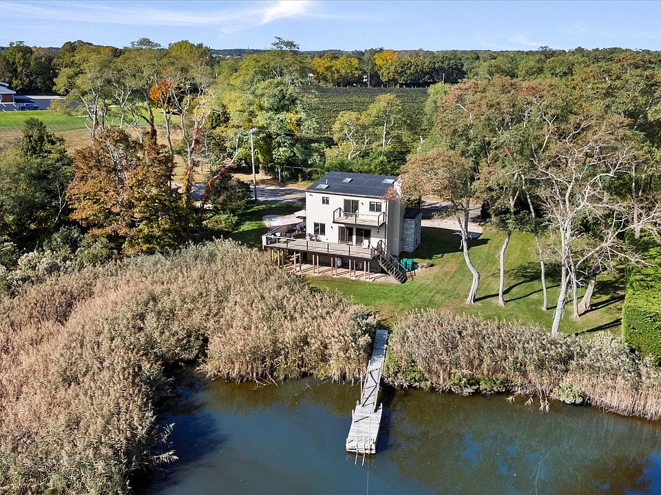 This completely updated and turnkey offering has been transformed with picturesque views from every window! Your main floor is entirely open concept with vineyard views to the north and water views to the south. This home sits on a shy acre at the end of Goose Creek with unparalleled views from your own private dock and 170' of waterfrontage. Featuring four bedrooms and 2.5 bathrooms, including your primary suite with ensuite and balcony, this home is not to be missed. Other upgrades include a stunning floating modern staircase, indoor garden, Chef's Kitchen with quartz countertops, wraparound deck for incredible outdoor dining and more! Escape, relax and enjoy your North Fork retreat with all the vineyards, beaches, farms and more that the East End is known for!