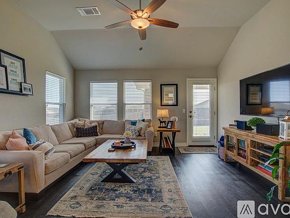 This 3 bedroom home offers a contemporary design and an open living/dining layout with an indoor utility room, including a new washer and dryer (optional)! Additionally, this home offers an outdoor covered patio with an extended section for evening meals under beautiful lights. The kitchen features stainless steel appliances including a microwave, gas cook range, refrigerator with ice and water dispenser in the door (optional), tile back splash and quartz counter tops. The two car garage has a built in storm shelter for peace of mind. The spacious guest bathroom has 2 entries for easier access from anywhere in the home. The home boasts an energy-efficient HERS score of 65, which guarantees low heating and cooling costs all year long! This home is move-in ready, don't miss this opportunity!