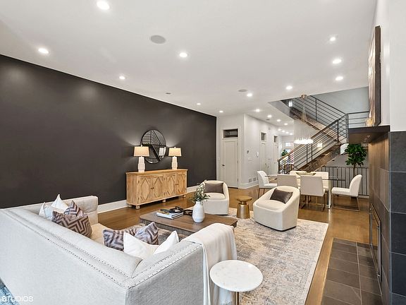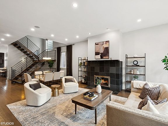 Featuring an impressive FIVE outdoor spaces including full roof deck with astroturf and 2.5 car garage, this Lakeview home is truly unique.The location of this residence is unbeatable, offering the best of city living at your doorstep. Enjoy the convenience of a short walk to Wrigley Field, easy access to the lakefront, and proximity to popular amenities such as vibrant Southport Corridor, Whole Foods and the Belmont CTA stop to make commuting a breeze. This is urban living at its finest, with endless opportunities for entertainment, dining, and recreation just steps away. This home offers four levels of living space, boasting 4 bedrooms, 3.5 bathrooms, and a third-floor lofted office/gym. As you step inside, you'll be greeted by modern finishes throughout. The kitchen would delight any home chef with high-end Bosch cooktop and double oven, SubZero fridge and freezer, and Fisher/Paykel dishwasher. The refinished cabinets and new hardware, along with the custom-built kitchen island and quartz countertops, create a stylish and functional space. The second-floor primary bedroom has an ideal layout featuring his and her custom walk in closets, and unique ensuite his and hers bathroom with new tile and vanities, and a steam shower. The second level also offers two additional bedrooms and a renovated full bath. The top floor loft is a versatile space that can be used as a home office, guest room, or gym, and it provides access to the rooftop deck. The lower level of the home boasts a spacious rec room with a wet bar area, perfect for entertaining. It also offers access to a fully enclosed patio, and a fourth bedroom. Additional features of this remarkable home include three fireplaces, hardwood floors throughout, dual zoned HVAC (one new 2021) second-floor laundry, and a huge deck over the 2.5 car garage with brand new Trex decking (2024) a custom pergola with planter boxes creating a beautiful outdoor oasis. Roof on garage has recently been replaced and has a 15 year transferrable warranty. A new professional gate security system was installed in 2022, and the home has recently been tuckpointed. Roof on home has a warranty and yearly maintenance plan that is good for 6 more years which will be transferred with the sale. Don't miss this incredible opportunity to own a meticulously designed home in the heart of Lakeview.