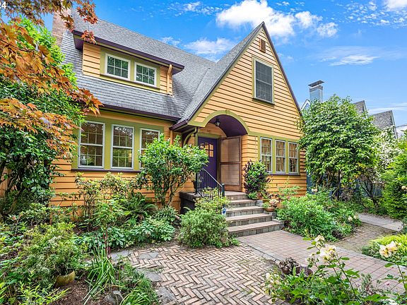 This timeless Irvington beauty will captivate you both inside & out. Lush gardens, private patios & mature trees welcome you into this enchanting century home where you'll find spacious rooms, refinished oak floors & exquisite original trim work. The kitchen was updated recently & includes new stainless-steel appliances. Flexible layout with 2 adjoining bedrooms on the main, perfect for office & family room. The lower level has high ceilings, a large utility room & 2 large bonus rooms. Live stress free knowing most systems are updated (high-efficiency furnace, copper plumbing, tankless water heater, seismic strapping & insulation upgrades). Backyard entertaining is a dream on the private brick patio surrounded by abundant gardens bursting with year-round blooms. Nestled in one of Portland's most coveted neighborhoods, this one-of-a-kind home is part of a vibrant community, complete with annual block parties & summer dinner gatherings. [Home Energy Score = 4. HES Report at https://rpt.greenbuildingregistry.com/hes/OR10229520]
