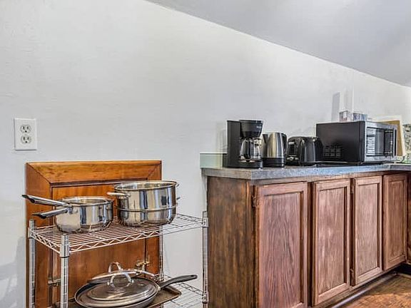The unit has good light, is well equipped, and has both a mini-split for heating and cooling in addition to a gas fireplace in the living room. It also has a full bath with a tub.