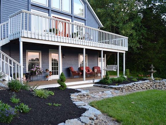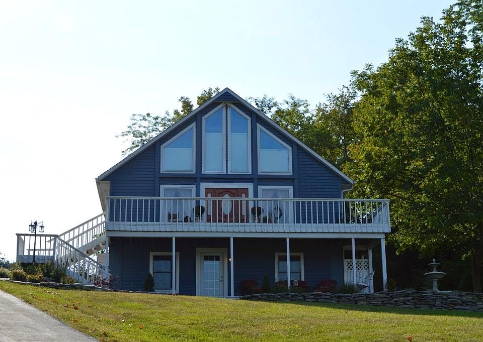 Secluded Brookville Lake home. 3-bed 2-bath A-frame home with Cathedral Ceilings. Home has been completely remodeled, with construction beginning in 2007. Two Living Rooms, with gas fireplaces in each, Theatre Room, Large Utility/Laundry Room, Whirlpool jet tub with double shower heads in main bathroom. Loft with spiral staircase, can be used as a bedroom, office, rec room, etc. $3k heat pump installed in 2010, which is terrific for winter. All appliances included, remains majority furnished, including most wall decor, as well as outdoor furniture included. New 30 year roof replaced in 2011. 1.5 car garage. 2700 sq ft. 100' x 200' lot. Property taxes are $600 a half. Less than 5 minute walk to Dunlapsville boat ramp, breathtaking views during all seasons of Brookville lake!