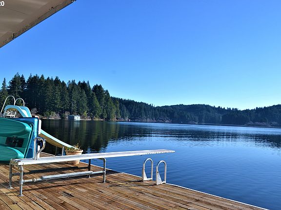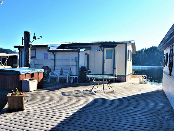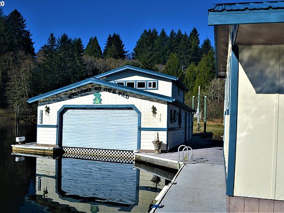 Unique float home on Tenmile Lake! Nautical themed home has amazing views of Blue Heron Bay. Land has fenced-in apple orchard & room to roam. Main house has 2br 1ba, additional suite and full bath above garage. Lots of decking and room for good family fun. Sold fully furnished. Boat available separately.