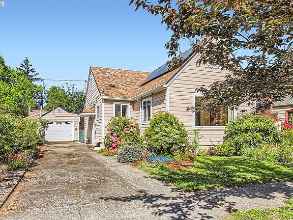 Welcome home to this enchanting 1940’s bungalow in the South Tabor neighborhood. This 4 bedroom home lives large and boasts an open layout with remodeled kitchen complete with stylish tile floors, granite countertops, breakfast bar and updated gas range and hood. Red oak hardwood floors throughout the central and open heart of the home connecting the kitchen, a living room featuring a gas burning fireplace and bright and airy dining room with a large picture window that lets in lots of light. The main floor features 2 bedrooms and 1 bathroom, while the upstairs primary suite is complete with bonus room for your nursery or home office space. This bungalow gem comes with peace of mind knowing that plumbing has been converted to pex and the furnace was replaced in 2023 and AC in 2024 ensuring you’ll be cool this summer and toasty in the winter. A brand new paid off solar system was also recently installed to cover your monthly power bills. The fully fenced yard and covered porch along with free-standing greenhouse offer ample space for the imagination of any home gardener, and the existing landscaping was lovingly designed for year-round flowers plus fruit trees and raised beds for veggies too! Plenty of parking in the long driveway with one car garage. Don’t miss the finished basement with separate shop and workbench and plenty of storage to complete this larger than life 2,851 sq/ft home. Just a quick walk to Mt. Tabor to the north and Foster-Powell to the south, this home is ideally situated between lively shops and restaurants and peaceful natural beauty.