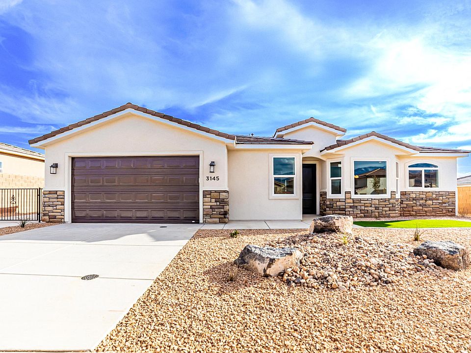 This one has one of those great big great rooms everybody loves...over 25 feet across with a vaulted ceiling! The home also has an office in addition to its three bedrooms. Walk-in shower and closet in the master suite plus a deluxe sized bathtub. Paved RV pad with full hookups. Gas fireplace in the great room. Home comes with gas stove/oven, dishwasher, microwave. Price includes landscaping in both front and rear as well as a block wall in the back and sides.