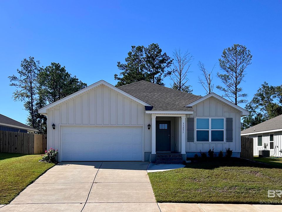 Welcome to Monticello at Stonebridge! You'll love the easy access to I-10, Hwy 59, and Baldwin County's beautiful beaches plus all the local shops, dining, and fun just a short drive away. Step inside this cozy Aria floor plan and feel right at home. The open layout connects the kitchen, dining, and living area, creating a warm and inviting space for family and friends. The kitchen shines with granite countertops, stainless steel appliances, a spacious pantry, and a large island that's perfect for gatherings. The primary suite is your relaxing retreat with a soaking tub, separate shower, double vanity, and a huge walk-in closet. Two additional bedrooms and a full bath offer plenty of space for guests or family. The privacy fenced backyard has plenty of flat space for a firepit, pool, swing set, or soccer practice. The view of tall trees in the HOAs greenspace is a plus. This home was built with comfort and efficiency in mind featuring energy-saving windows, a Carrier heat pump, smart home technology, and Hardie Board exterior. Plus, it's built toward Gold Fortified standards, which may save you up to 50% on homeowners insurance! Come experience the comfort, convenience, and charm of Monticello at Stonebridge. Seller is licensed agent in State of Alabama. Buyer to verify all information during due diligence.