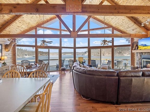 The PERFECT Lake House with all of the lake charm! Located in a cove with great water depth on the 55 mile marker, this gem is absolutely stunning AND turnkey!!! Vaulted ceilings with windows that span the entire lakeside provide an incredible lake view, gorgeous wood beams that give so much character, screened deck to enjoy the outdoors without the bugs, and a truly amazing new custom dock that has so much entertaining space, storage shed, and perfect waters for fishing, swimming, and water sports! Relax and unwind in this move in ready, turnkey home that is furnished with everything from dishes to lifejackets to bedroom sets--pack a suitcase and enjoy lake life! With a bedroom and bathroom on each of the three level, plus a bonus bunk room area in the lower level allow everyone to spread out and have their own space. Gentle lakeside yard, detached garage, fiber optic high speed internet, lower level wet bar area, wood burning fireplace, and a fully remodeled home! 2024-04-09