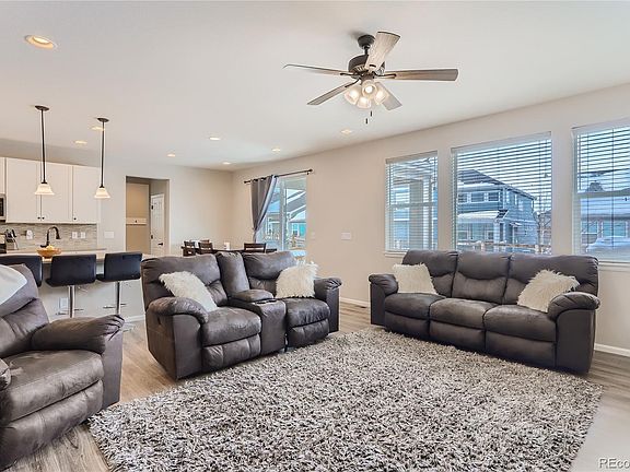 Gorgeous William Lyons home built with high-end features in the highly desirable Lakes at Centerra community of Loveland! Showcasing mountain views and surrounded by Lakes, this home is an excellent opportunity to own in the neighborhood and is ready for you to move in! A covered front porch welcomes you into the main level of this home which features a neutral color palette and abundant natural light throughout. French doors lead into an at-home office or study space at the front of the home that is tucked away for a wonderful spot to get work done. The open main-level layout makes for easy conversation and connection with family and friends. The fully-appointed kitchen boasts quartz countertops, a kitchen island with a breakfast bar, high-end stainless steel appliances, and a walk-in pantry. Find access to the patio just off the dining room space and access to the attached 3-car garage just off the kitchen through the mudroom hallway. Cozy up in the living room next to the gas fireplace on chilly Colorado evenings! Upstairs, the private primary bedroom boasts tray ceilings and a private five-piece en-suite bathroom for everyday luxury. Three additional spacious bedrooms, a full bathroom, and a laundry room complete the upper level. Find even more bonus square footage in the large unfinished basement! The fully-fenced backyard features an extended patio that was put in from edge-to-edge of the house, surrounded by custom professional landscaping. Enjoy living in this fantastic community with amenities including a clubhouse, pool, park, and playground. Walking distance to the neighborhood K-8 school! Find outdoor activities, shopping, dining, and more just minutes from your front door!