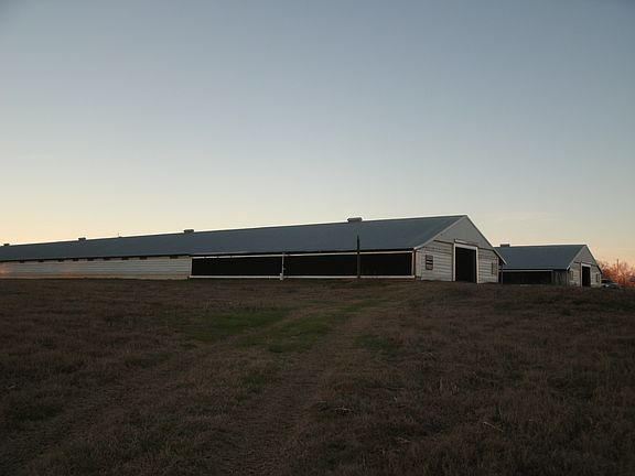 Brick home has 4 bedrooms and 2 baths. 1464+/- SQ FT Home with 20+/- acres in serene setting. Hay field, 20+/- acres. Pasture with nice catch pen. Great family business with two Broiler Houses built in 1994. Newly updated. One broiler house not operational, used for storage. Additional dwellings can be built on this property. 135w generator included. GREAT BUY !!!! Asking only $425,000
