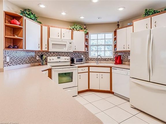 This well maintained home is perfect for a seasonal resident or full time homeowner. You will love the cathedral/vaulted ceilings, tile & wood laminate flooring throughout, and plantation shutters. The large kitchen comes with newer appliances, tiled backsplash, solid surface countertops, pantry & breakfast bar and is completely open to the dining area & spacious great room. There are (2) bedrooms, each with their own bath. The guest bedroom serves nicely as both an office with its built-in desk & cabinets, as well as a bedroom with the built-in Murphy bed & dresser drawers on both sides. The 10x13 sun room, with surrounding windows, is perfect for your enjoyment year round. And lets not forget to mention the newer roof in 2016, newer AC, newer garage door and newer hot water heater.