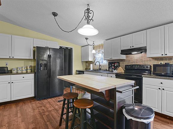 4 Bed, 2 Full Bath, ranch home on over an acre & wooded for privacy! This home features an open living area with vaulted ceilings, main floor laundry/mud room located off the kitchen, 6-panel doors, & easy to care for wood-look lam flooring. Kitchen includes white cabs, formica tops, black appliances (fridge included). Dining Room with a sliding doors letting in natural light and views to the wooded backyard. There is extra space to set up a casual sitting/play area just beyond the dining space! Master Bed features a walk in closet and full bath with oak comfort height vanity, med cab, vinyl floor, & shower. Split floor plan has 3 additional beds all with carpet & blinds and a nearby Full Hall Bath with tub/shower combo, lam flr, & comfort height white vanity. Outside enjoy a quiet country setting, patio, shed stays for storage. Just minutes from 141/shopping & entertainment!