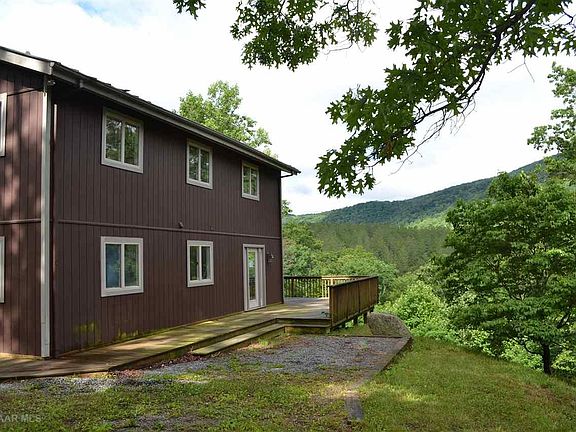 HUGE PRICE REDUCTION!!!!!!Fantastic opportunity to live with privacy on 10 acres! Leave the stress of the city behind.Imagine sitting in a Hot Tub on the deck and listening to the birds sing and the clouds pass by the mountain view you will have. Listed with repairs completed but AS IS .Double sided gas log fireplace. One car garage in basement was converted to doors but tracks still there to convert back if a buyer wants a garage. Solar panels are NOT functional nor repairable.Warming drawer in kitchen.Ice maker and Dishwasher leak and are turned off. Shared driveway but no formal agreement just a good neighbor.