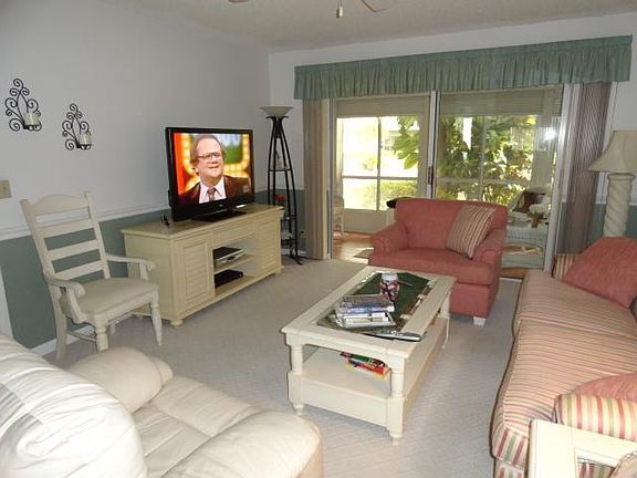 THIS IMMACULATE FURNISHED CONDO HAS LAKE AND TROPICAL FOLIAGE VIEWS. THE PATIO HAS SLIDERS TO KEEP OUT THE RAIN AND KEEP IN THE BEAUTIFUL VIEW. THE SPACIOUS LIVING ROOM OPENS ONTO THIS PATIO. THE TILED EAT-IN KITCHEN HAS 2 PANTRIES, NEWER STOVE & DISHWASHER AND PASS THRU TO THE DINING AREA/LIVING ROOM. THE MASTER BEDROOM ALSO OPENS ONTO THE PATIO AND FEATURES AN AIR CONDITIONED WALK-IN CLOSET AND WALK-IN SHOWER. THE 2ND BR AND BATH ARE IN THE FRONT OF THE CONDO ALLOWING GUESTS PRIVACY. THIS OWNER HAS ALSO UPDATED THE WATER HEATER, AIR CONDITIONER, WASHER/DRYER. A WELL CARED FOR HOME!THIS CONDO IS LOCATED NEXT DOOR TO THE CLUBHOUSE WITH ITS MAIN POOL, SOCIAL ACTIVITIES, SHUFFLEBOARD, SAUNA. 55+COMMUNITY, NO PETS PER THE CONDO DOCUMENTS. SOME EXCEPTIONS TO FURNISHINGS.