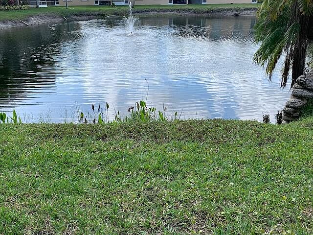 Well maintained, lovely 1st floor 2BR/2BA split, furniture negotiable. Upgrades thru-out. Screened patio overlooks lake and has vinyl windows with shutters...adding living space and weather protection. Eat-in kitchen has 2 pantries. Pass thru from kitchen to dining room. Living room and master bedroom open to the patio. Master bedroom has lovely built-ins. Complete accordion shutters. Just steps away to the clubhouse plus the main pool. Convenient to the Turnpike, the Wellington Green Mall. fine restaurants and the PBIA Airport.