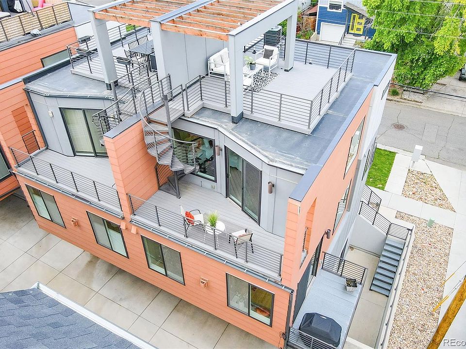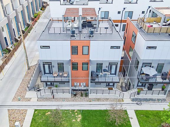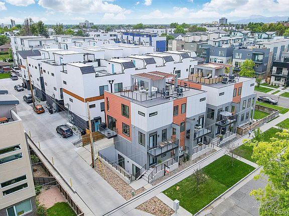 *MOTIVATED SELLER!* Step into this exceptional contemporary residence, boasting a striking rooftop deck that presents breathtaking views of downtown Denver's skyline. Nestled within the highly sought-after Sloan's Lake neighborhood, this home is a mere stroll away from exquisite dining establishments, superb amenities, and top-tier entertainment at Empower Field at Mile High. As you enter the home, you'll be captivated by the exquisite hardwood floors, high ceilings, and alluring staircase. The second level is where you will discover a welcoming living room adorned with a floor-to-ceiling tiled gas fireplace, expansive windows, and two spacious outdoor decks. Flowing seamlessly from the living room is the kitchen, showcasing quartz countertops, modern cabinetry, and s/s appliances with a gas range. Journey further upwards to encounter the primary suite, an oasis of luxury awaiting you. A large walk-in closet provides ample space to curate your attire. The primary ensuite bathroom is a true sanctuary, exuding elegance and refinement with its exquisite freestanding bathtub and frameless shower. Connected to the primary suite, a large sliding glass door opens onto a 20-foot deck featuring a stylish staircase that gracefully ascends to the expansive rooftop patio. Whether relishing a morning coffee or hosting gatherings against the backdrop of Denver's stunning skyline, this space is a true gem. Distinguishing this home is its walk-out basement, two spacious bedrooms, bathroom, and plenty of storage. This configuration is perfect for a home gym, roommates, a home office setup, or even potential income through Airbnb. The rare 2-car attached garage further enhances the convenience of this remarkable home. Seize the opportunity to own this exceptional corner rowhome in one of Denver's most coveted neighborhoods. Arrange a showing today to immerse yourself in the seamless blend of metropolitan living and contemporary comfort. *Ask about 1.2% credit from preferred lender.*