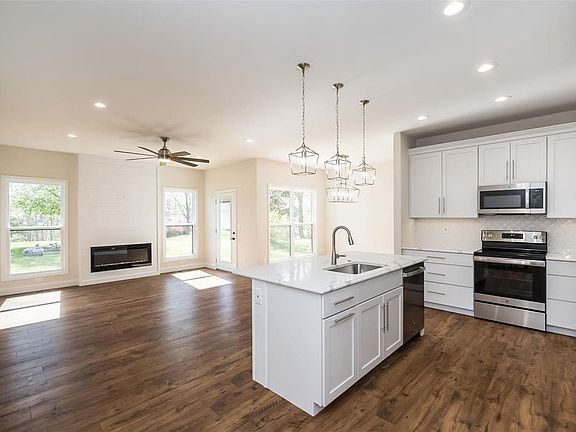 Brand New, Move in Ready and gorgeous features everywhere you turn! This Custom Ranch home is a 3 Bedroom 2 Bath split bedroom Open concept Buyers desire in this market. Pulling up you will be wowed by the craftsman styling with Stone/vertical siding Elevation with Architectural Roof, Oversize Garage 3 Car Garage. Upon Entry you are greeted with 9ft ceilings, & high grade LVP flooring that continues throughout the home. The custom kitchen features amazing 42” cabinets with crown, pullouts, soft close, backsplash, stainless appliances plus amazing Quartz counters. Kitchen opens right up to the Great room that offers Recessed lighting, Modern fireplace & easy access to the Huge Patio overlooking level back yard. High end luxury master features custom cabinetry, huge walk in Onyx shower and double vanity. All this in a gated lake community with public golf course, beach and Pool tucked away just and just a short drive to Wentzville Parkway with everything you could ever need. Don't Wait!