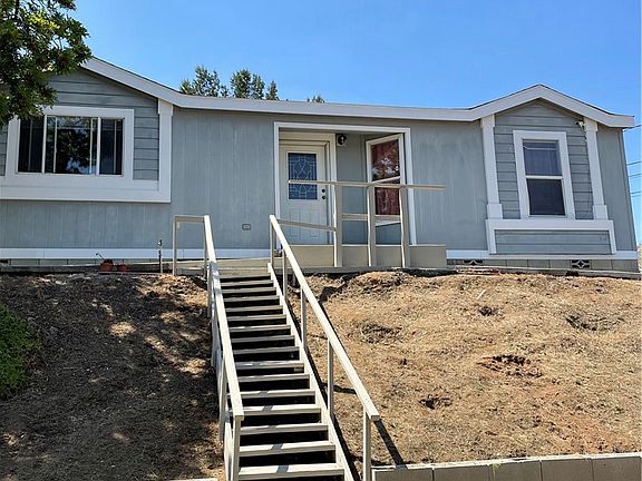 This lovely 3 bed / 2 bath Manufactured home on permanent foundation sits on a Large split level lot, that is fenced completely, and has 2 areas for parking, along with a car port.