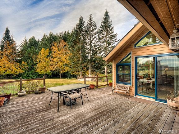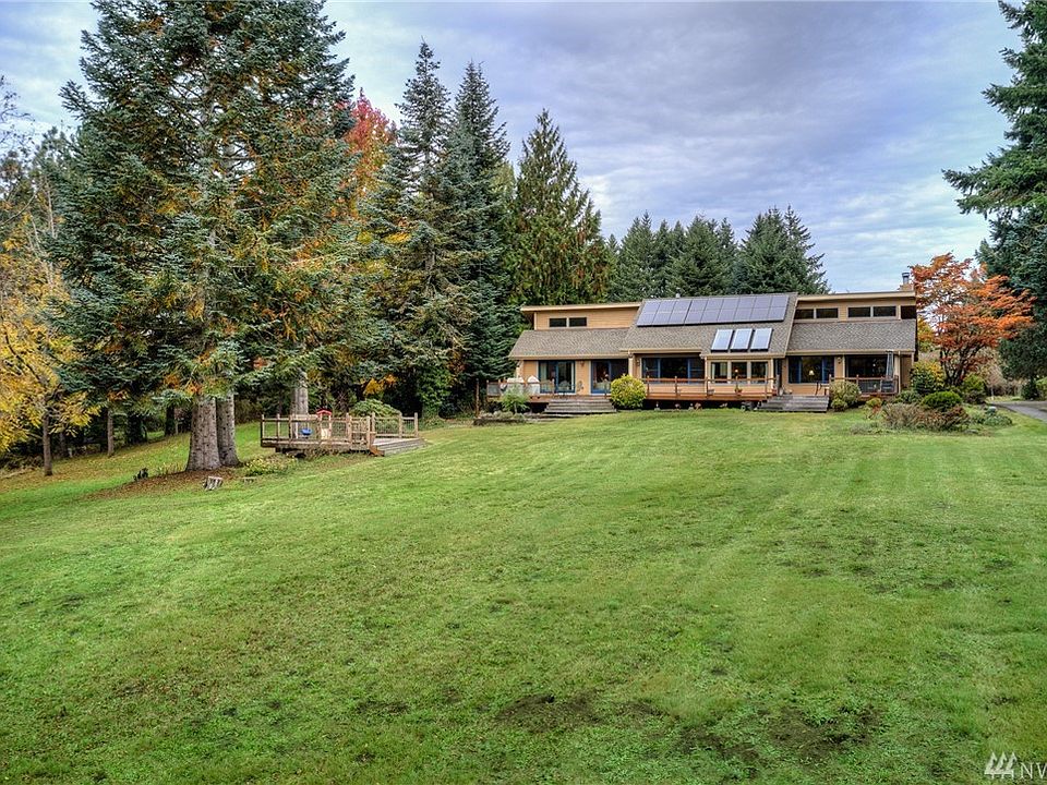 Rare, efficient 2.3ac Centennial Elementary/WMS/OHS 3BR boasts solar, heat pump cooling & triple-pane wood-wrapped window-filled vaults in 2187sf 1-story. Brazilian hardwood mega-sized deck access thru 4 sliders including sunroom dining, master, LR & 2nd BR. Park-like lot with apple & walnut trees, seasonal stream & 2nd deck. Bonus shed storage on garage & 2 wood fireplaces, plus huge laundry room. Next door, an 88ac berry farm! Less than 10mins to I-5/downtown Olympia or Tumwater State offices.