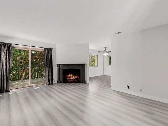Gorgeous La Costa end unit is private and encased by mature trees creating a serene retreat. Enter to find new luxury vinyl flooring, fresh paint in neutral, on trend hues. The living room has a cozy fireplace and sliders that lead you to a large deck where you can sip a glass of wine or a cup of coffee and dine al fresco in the year-round idyllic coastal climate. The beautiful updated kitchen has new cabinets with additional wall pantry and storage, quartz countertops and opens to the formal dining room. A half bath and indoor laundry room completes the main floor. Meander downstairs to discover three generously-sized bedrooms. The primary bedroom enjoys the convenience of an ensuite, while the other two bedrooms share a hall bath. Primary bedroom and additional bedroom have large sliders that lead into a spacious private patio. As an added bonus there is a separate enclosed storage room, 1 car garage and additional assigned parking. Meadowridge is a serene community with plenty of mature shade trees creating a park-like atmosphere that offers its residents two pools, tennis courts and greenbelts that beckon you to relax in the soothing shade. The beach is less than 10 minutes away or enjoy a nice bike ride to save the hassle of parking. Great schools, shopping, dining and entertainment venues are all blocks away. Don’t let this opportunity pass you by!
