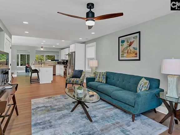 Super charming brick Forest Acres cottage, stripped to the studs in 2023, redesigned and rebuilt with new wiring, plumbing, ductwork, insulation, drywall, trim, doors, cabinetry, countertops, appliances, paint, lighting and plumbing fixtures, windows, new and refinished flooring - the list goes on! Brand-new 12 x 15 patio in the large, fenced backyard. Spacious storage shed. This open floorplan home has features typically found in more expensive homes - a spacious pantry, large quartz-topped island with seating for 4 AND a large dining area, HUGE laundry/mud room, a massive second living room/sunroom past the kitchen, and in the Primary Suite, a walk-in closet, vaulted ceiling, separate water closet, double vanity and SEXY 4' x 5' shower with body sprays, shower head and handheld wand. There's good spacing between the Primary Suite and other bedrooms due to a clever design with privacy in mind! Disclaimer: CMLS has not reviewed and, therefore, does not endorse vendors who may appear in listings.