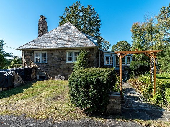 Adorable Stone Cape Cod in Central Bucks School District. This well kept home features 2 bedrooms and a full bath on the main level and a spacious 2nd floor bedroom with additional sitting room/office and lots of closet space and storage. The upgraded kitchen with cherry cabinets, stainless steel appliances, Corian counter tops and breakfast bar is open to the dining room. Off the kitchen is a sunroom which provides additional living and storage space and access to the rear/side yard and deck. The family room features a stone fireplace and lots of windows. The finished basement offers a large living area, stone fireplace with wood insert, Large bar with mercer tiles, half bath, laundry room with sink with lots of cabinetry and plenty of room for storage. Additional conveniences are a detached 2 car garage, ample parking, and a large rear/side yard. Home is being sold in as is condition. Shared driveway, please park on left side of driveway, back by garage or next to wood pile.