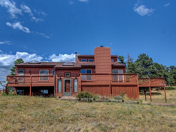 MUST SEE Wrap-around-deck with electric awning, panoramic valley and mountain views, elk and deer viewing, backs to acres, cul de sac, open living/dining/kitchen, 2 master bedrooms one up and one down, south sun facing with windows, skylights, vaulted ceiling, gas fireplace, 4 heat zones, garage plus carport, fenced-in dog yard. Close to downtown Evergreen and 30 min. from Denver, best of mountain and city worlds. Pet deposit required. Available Now!! .
