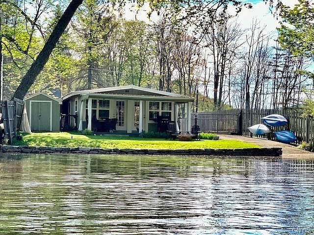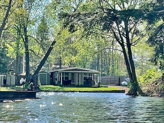 Absolutely charming waterfront cottage on Tuscarora Lake, bay area. This property has it's own boat launch spot! The entire cottage has been completely renovated with new kitchen, bath, bedrooms, livingroom and windows! Master bdrm and livingroom have doors that lead out to private veranda with overhang for secluded outdoor waterfront living! Concrete drive goes down to the boat launch, plus there is a gate to keep this private lake private at the boat launch area! New DEC approved seawall for water frontage! Appliances all stay, some furniture stays, Owner will label what stays. Perfect spot for avid kayakers and paddleboard & motorboat people! 2 storage sheds and a 3rd for housing the water heater and well pump. Such a wonderful opportunity to buy right on the water at this price!