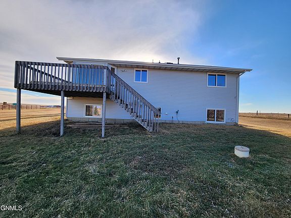 Great rural property west of Mandan. 4 bedroom 2 bath split entry home with attached double garage & 1.58 acres with established trees surrounding most of the property. Great place to finish basement & make your own touches to be YOUR home!!