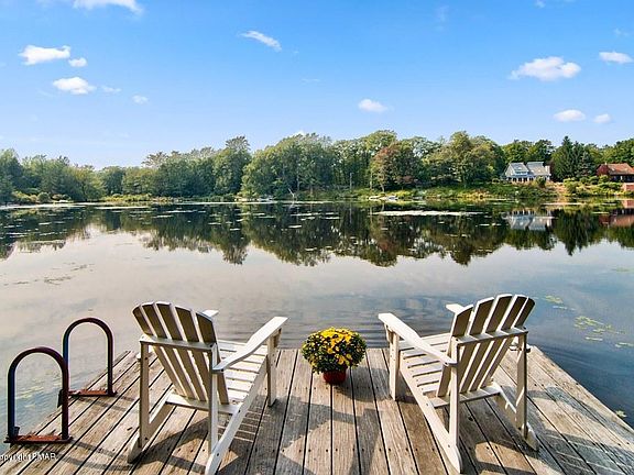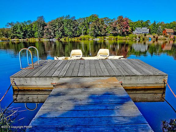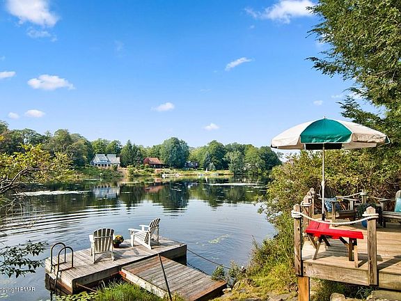 Move right in to this beautiful lakefront home with its own private dock on the large lake in serene Lake in the Clouds. Swim, boat and enjoy nature in an idyllic mountain setting. This charming retreat sits on 1.4 acres tucked into the woods with plenty of privacy. Meander down the scenic path to the lake and dock. The home has an updated kitchen, 2 stone fireplaces, large cozy family room with 100'' home theater system, 4-season sunroom, two decks including one with a 7 person hot tub, two spacious bedrooms and baths plus a large loft/3rd bedroom. The house also features a whole house generator, nest thermostat, central A/C, heated over-sized one-car garage and two storage sheds. Most of the beautiful furnishings are negotiable. Perfect mountain getaway only 2 hrs from NYC & Philadelphia