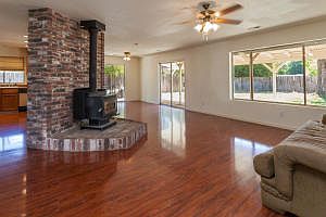 Nice 3/2 with open floor plan. Wood stove, laminate flooring throughout, master bedroom has two closets, Newer roof, HVAC and hot water heater. There is RV parking and a large covered patio which is plumbed for gas, perfect for entertaining.