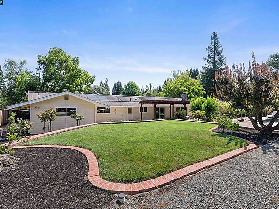 Gorgeous single story home in the heart of Alamo! Enchanting ranch style home w/ updates & open Kitchen/Family Room floorplan ideal for entertaining and day to day living. This 4 Bed / 2 Bath home w/ just under 2,200 Sq Ft is ideally located behind downtown Alamo, steps to the Iron Horse Trail, backs to the gorgeous Las Trampas Regional Park plus close to Top Alamo Schools, transportation, freeway & much more! The backyard is parklike w/ meandering flagstone trails, expansive entertaining patio w/ pergola, sparkling pool/spa w/ ample patio for lounging, large grass play area & sport court area. The pool is located towards the rear of the yard for expansion potential to preserve the beautiful grounds. Spacious Living Room is highlighted by the large picture window of the front yard and anchored by the brick wood burning fireplace plus crown molding & hardwood floors. The 'Chef's' kitchen is adjacent to the Family Room for that great room comfort and features a large Kitchen nook area with custom built in cabinet. Family Room has a wall of windows overlooking the yard plus raised ceilings & brick wood burning fireplace flanked by bookcases. Thoughtful design, updates and prime location make this home perfect a perfect opportunity for a long-term home.