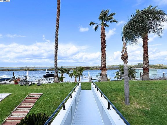 Come home to your dream waterfront retreat in Bethel Island, CA. This is a boater’s paradise with a touch of luxury! This stunning 5 bedroom, 3.5 bathroom gem boasts a spacious 4 car garage with extra room for your RV or boat, ensuring all your toys have a home. One of the bedrooms is a detached guest suite, perfect for visitors, in-laws, or even a private home office with its own entrance. Step outside to your W-shaped double slip for boats, designed to securely dock two watercraft, ready for your adventures on the water, with direct access to the fast water of the California Delta, which is perfect for fishing, waterskiing, or cruising over 1,000 miles of scenic waterways! The unblocked delta view is absolutely breathtaking, offering serene sunsets, vibrant wildlife, and panoramic beauty right from your lush backyard. Imagine sipping your morning coffee on the patio, surrounded by palm trees and tropical vibes, or hosting barbecues with friends on the expansive lot. The inside of the house provides ample space for relaxation and entertainment, while the private dock ensures your boating lifestyle is front and center. This home delivers the ultimate Delta experience, blending luxury, nature, and adventure. Don’t miss your chance to live where every day feels like a vacation.