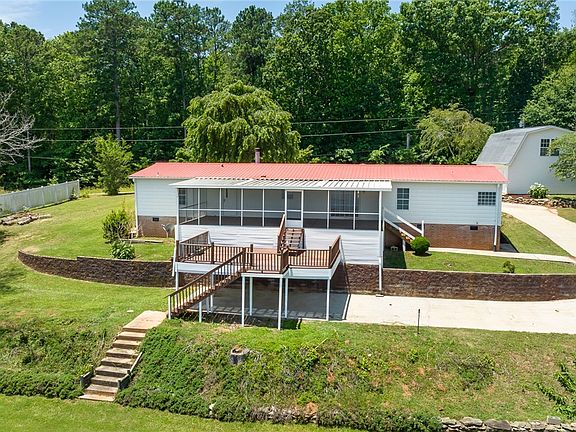 Escape to a whimsical lakeside retreat that beckons you with open arms to embrace the enchanting beauty of Lake Greenwood. This newly remodeled Redman ranch-style home that features vaulted ceilings, an open floor plan, 4 bedrms, 2 bathrms, living rm w/fireplace, dining rm, family rm, home office (could be 5th bedrm), front and back covered porches, deck, laundry rm, detached two story garage w/loft, carport, a covered boat slip and an additional dock complete this waterfront paradise. 2450+/-sqft. It’s nestled near the end of the biggest point on lake, offers an idyllic lifestyle w/a touch of magic. Imagine a place where neighborhood rules vanish, and your dreams of freedom come true. With no HOA fees to constrain your desires, this location is a treasure trove of possibilities. Whether you seek a full-time lake residence, a weekend sanctuary, or an income-generating property, this home has everything you've ever wanted. Set on a manageable .9-acre private lot w/174'+/- of lake frontage this well-maintained lakefront haven provides perfect backdrop for a life filled w/joy and relaxation revel in the majestic long lake views, and explore the terraced lot. Take some fishing poles down the gently sloped grassy yard to one of two docks included in this offering. Picture yourself basking in the sun, surrounded by a level, park-like setting that invites you to create lasting memories - perfect spot for a gazebo or fire pit while you enjoy being right on the lake. As the sun sets, gather on the enormous covered lakeside screened porch, where laughter & cherished moments await. With 212 miles of pristine shoreline at your fingertips, indulge in endless adventures of boating, swimming, & fishing. Just a stone's throw away, you'll discover the Sandbar, a gathering place where friends meet & create unforgettable memories. Skippers Landing, a nearby haven for all your needs, including boat gas, a boat ramp, & delectable food & beverages, is within easy reach. They always have extra fun at the lake for you to enjoy. Movies, music, pontoon/jetskis rentals. Don't forget to throw a fry or two to the turtles. Let your imagination run wild as you envision the laughter-filled days spent at the Jungle Float mobile Water Park, where endless fun awaits. Delight your taste buds at Lee's BBQ and Break on the Lake, a mere 5 minutes away. After buying this home from his aging parents; seller's meticulous remodeling efforts have breathed new life into this lakehouse, so it is completely turnkey. New HVAC unit & new duct work, fresh paint, beautifully stained decks, luxurious plank vinyl flooring, & more. Step inside to find a spacious open floor plan adorned w/breathtaking lake views, seamlessly flowing into the dining, family & kitchen areas. The well-appointed kitchen boasts a pantry, breakfast bar & a center island w/additional seating, perfect for casual meals and social gatherings. Need a quiet space to work or an additional bedrm? Home office effortlessly doubles as a 5th bedrm, ensuring flexibility to suit your unique needs. Unwind in the master suite, featuring tiled walk in shower, double sinks & walk-in closet. Beyond the main house, there’s an oversized two-story detached garage w/huge 23x14ft finished loft awaits, providing ample space for storage or the creation of a mother-in-law suite, rental accommodation, gameroom or an inspiring hobby room. The options are limited only by your imagination. There’s also a carport to store your boat trailer/mower & a long concrete driveway w/an abundance of parking. With lower Laurens County taxes, a complete remodel; incld; ceiling fans, faucets, sinks, toilets, flooring, trim, counter tops, plumbing, new garage door, enclosed storage under back deck for lake toys,, a metal roof, this home is an investment worth every magical moment. Embrace the lifestyle you've always yearned for – a life filled w/adventure, comfort, and the untamed beauty of Lake Greenwood. Take the leap and make this dream a reality