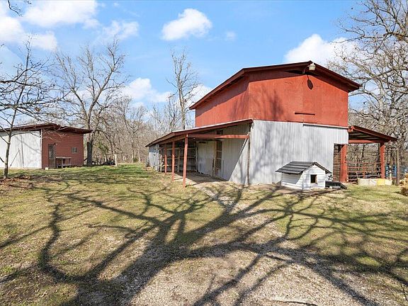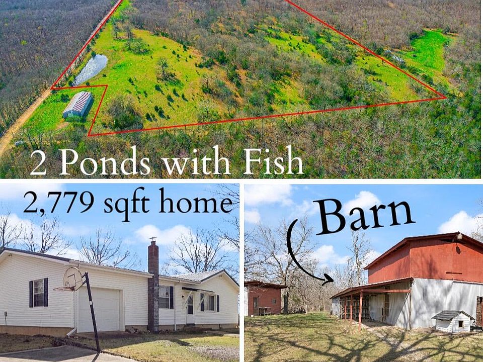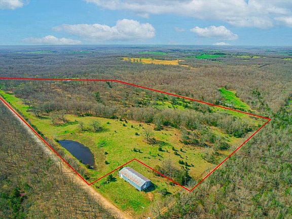This is a magical place to live! Over 50 Acres of land with TWO ponds, valuable timber, berry bushes, Pecan, apple, peach, & pear trees galore! The home is larger than it appears with 2,779 sq ft, 3 bedrooms, 2 bathrooms, a second kitchen area for canning, and an enclosed sunroom. You will have plenty of space. Peaceful & quiet country living at its best. The red barn would be ideal for livestock & hayloft. A large matching storage shed perfect to keep all your tools & equipment in. A fun place for kiddos too, with the small basketball court, ponds to fish in & berries to pick. The metal roof, gutters & leaf guards were installed approximately 5 years ago & have a lifetime guarantee. The water heater & water softener are about 2-3 years old.