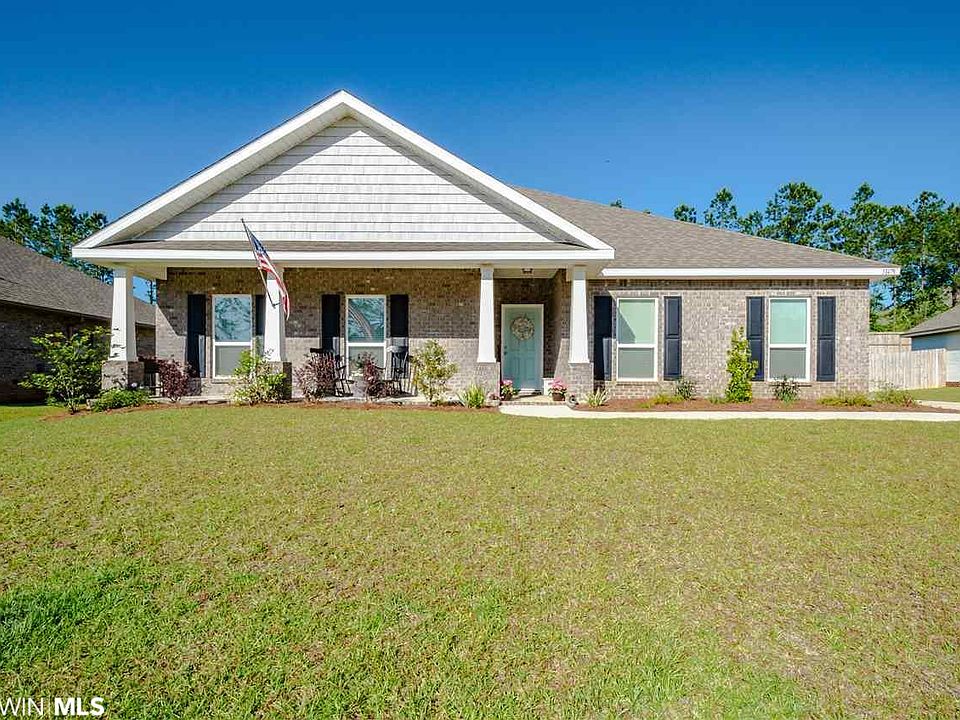 Shows like NEW! Pristine Craftsman style home with neutral tones, luxury vinyl plank flooring and carpet in the bedrooms. This open floor plan is great for entertaining with a large island with plenty of seating and breakfast area. Kitchen has painted cabinets, stainless appliances, GAS range and beautiful patterned granite. Great room has double trey ceilings and a corner fireplace. Split bedroom plan features Master bedroom on rear of home which measures 16x14 with a trey ceiling. Master bath has granite, double vanities, painted cabinetry, garden tub and separate shower. Walk in closet is very spacious 12x7. Tankless gas water heater so you never run out! Second bathroom has painted cabinets, granite and double vanities as well. Nice size laundry room and half bath for your guests. Double garage and covered back patio. Stonebridge is located off Hwy 31 and centrally located between Mobile and Pensacola. Only 45 min to Gulf Beaches. Home is located near entrance and neighborhood amenities. This neighborhood has a pool with zero entry, exercise room, playground, BBQ area, basketball, tennis, bocce ball, putting green and wiffle ball field. Gold Fortified for large savings on insurance!