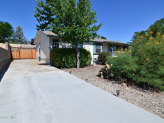 This 2 bedroom,2 bathroom plus DEN and AZ Room, Potential 3rd bedroom. Home is Conveniently Located to Shopping, Entertainment, Schools and Hiking Trails in Prescott. NO HOA, Nice open floor-plan has a warm and inviting living room with gas fireplace, formal dining room or flex room, plus an office, Engineered Wood Flooring Installed. Light and Bright kitchen has Lots of windows and glass door cabinets, Corian Counters tops, Island with gas range, Built in China Cabinet and a breakfast nook. Laundry room has desk and 2nd refrigerator. Spacious Master bedroom, w/ walk in closet, bathroom with a Separate Shower and Walk in Jetted Tub. AZ Room with inside storage shop/room, Outside shed ,Fenced yard, 3 Sided Carport. RV Parking Pad,. On Stem-wall.