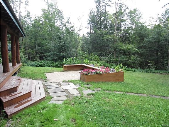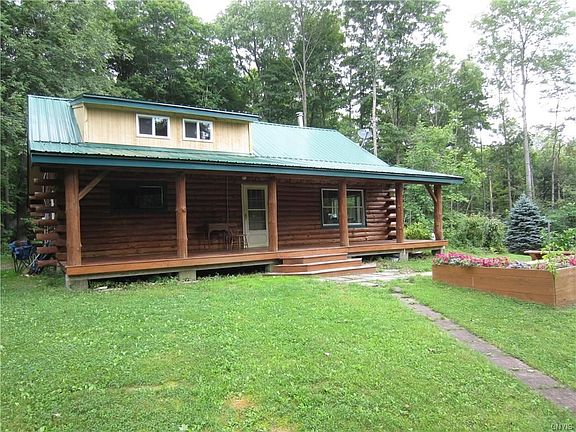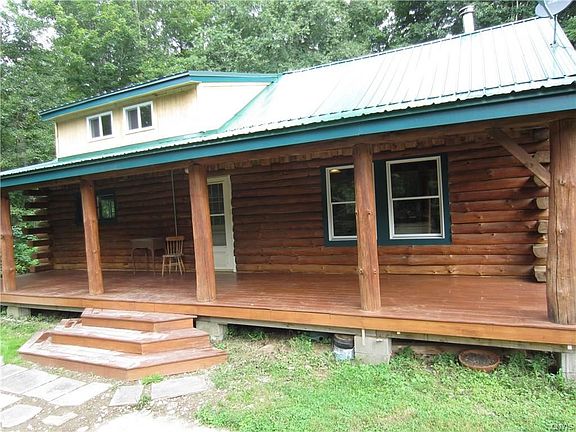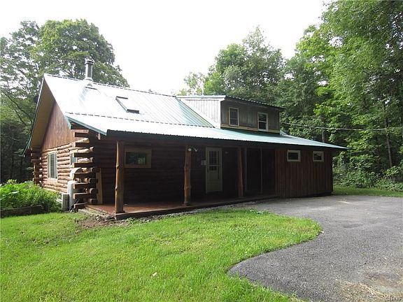 Back on Market-Buyer changed mind. Yr-round Log home set on 9 private acres perched on the edge of Stoney Pond State Forest perfect as a country living location or as a hunting/biking get-away. Enter the private driveway which features 2-car detached garage & you'll see a big wide front porch of the house just waiting to greet you. The home features many updates including new steel roof, open plan with many windows, wood-stove, 1st fl laundry w/full bath & mudroom on the 1st floor and 2 beds (one is captured) & full bath on the 2nd.There is a large covered back deck w/views of a pretty patio w/raised beds and trees as far as the eye can see.EZ commute, just 6 miles to Morrisville, 9 to village of Cazenovia. Lifestyle or Get-way-you'll enjoy the peace & quiet year round.